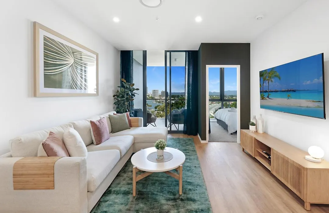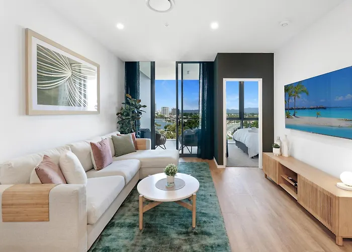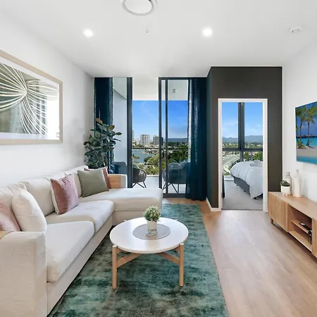Das 2-Zimmer-Apartment Brand New Modern 2Bed 2Bath Canal View Gold Coast liegt in unmittelbarer Nähe von verschiedenen Sehenswürdigkeiten der Gegend: St Vincent's Catholic Church befindet sich unter anderem 6 Fußminuten von hier entfernt. Das 100 m² große Apartment bietet Zugang zu einem Außenpool und liegt in nur 550 Meter Entfernung von der SkyPoint Observation Deck.